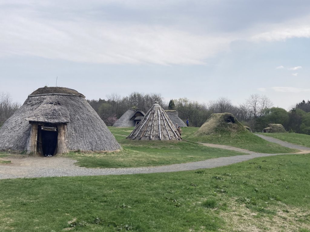 施設内の外の広間に、縄文時代の建物がありました。ほとんどが復元されたものでしたが、建物内に入ることが出来て面白いと思いました。