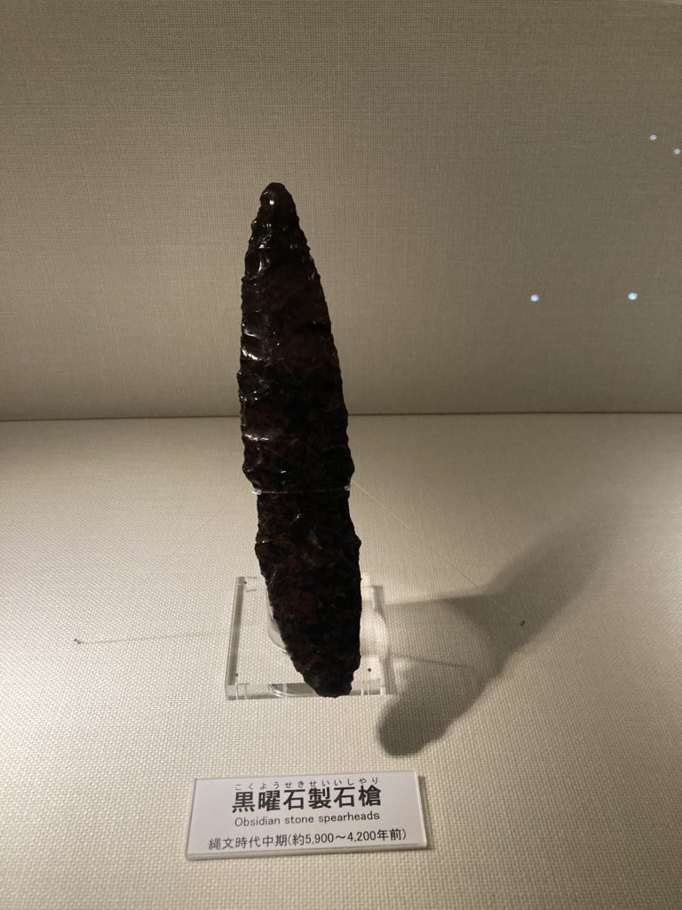 この遺跡の一番の見所は、遺跡から発掘された掘り出し物で、大量の土偶、縄文土器、黒曜石などがあり、見ごたえがありました。