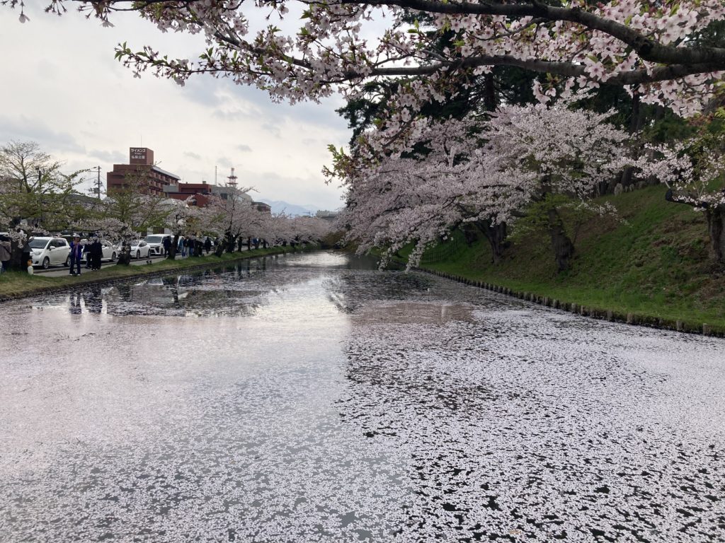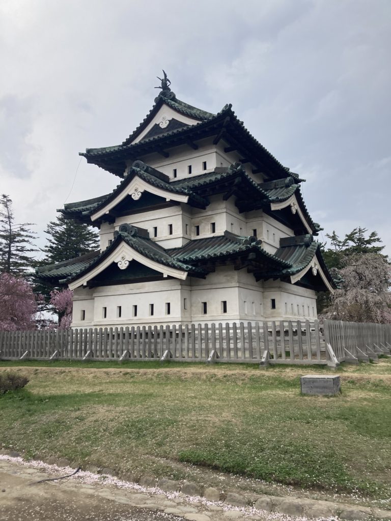 弘前で観光地があまり見当たらず、行った先が弘前城。こちら、桜が満開で!!花見のシーズンに行ってよかったと思いました。城は他と比較するとちょっと小さいですが、、、